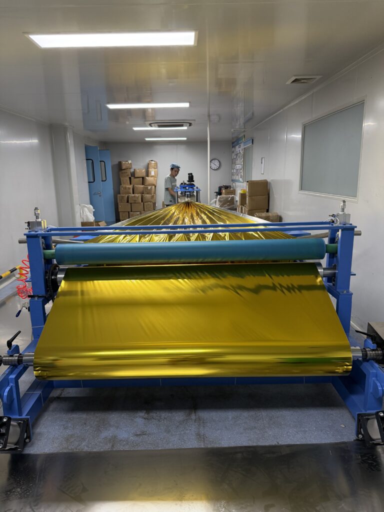 Automated emergency blanket line delivering consistent quality and high output for large OEM and private-label orders.
